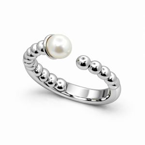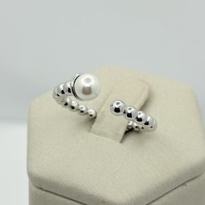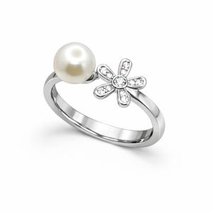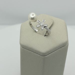Anillo con circones en Forma de Flor y Perla, Ajustable