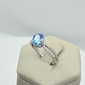 Anillo con Circon Ovalado Azul