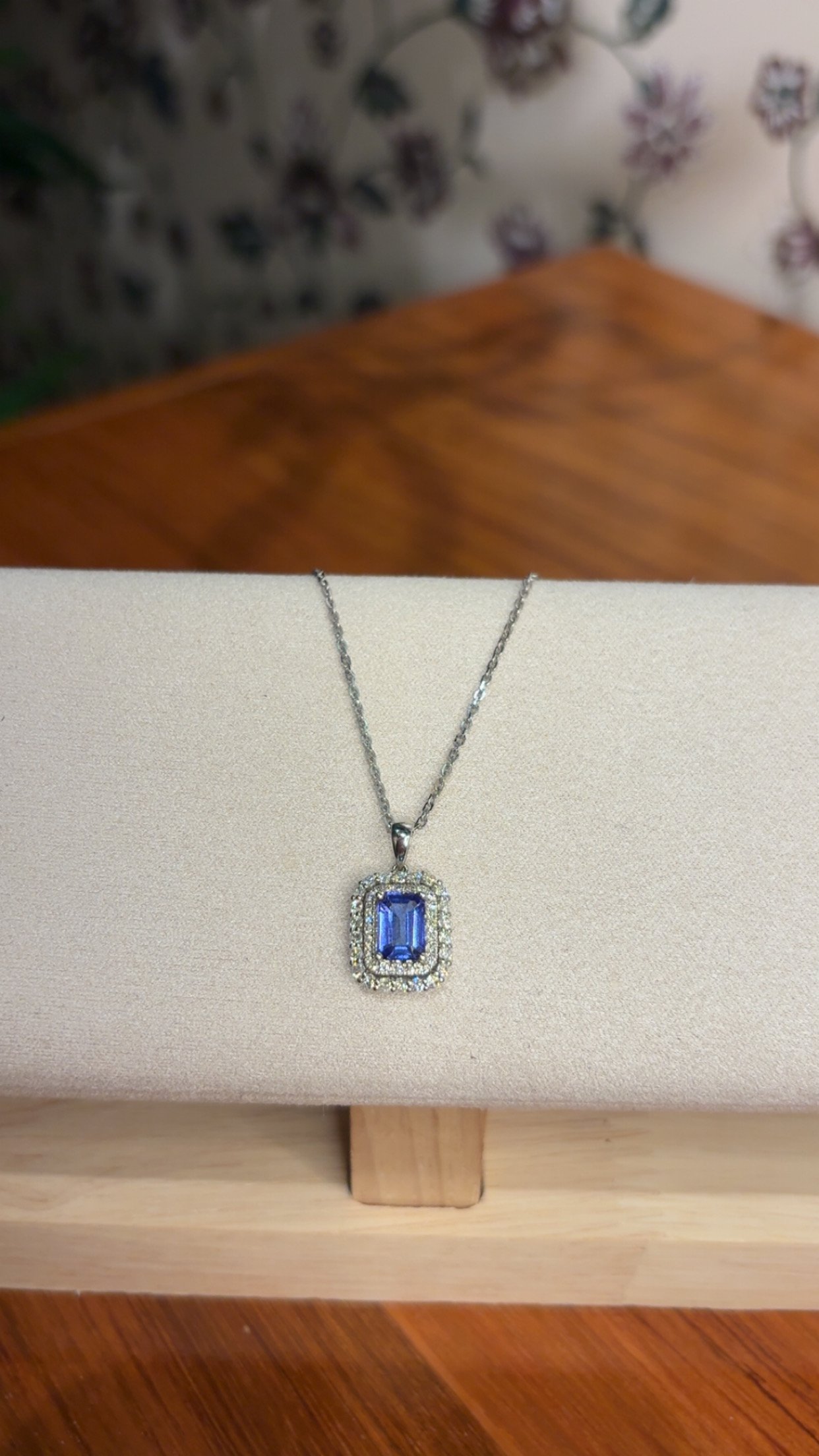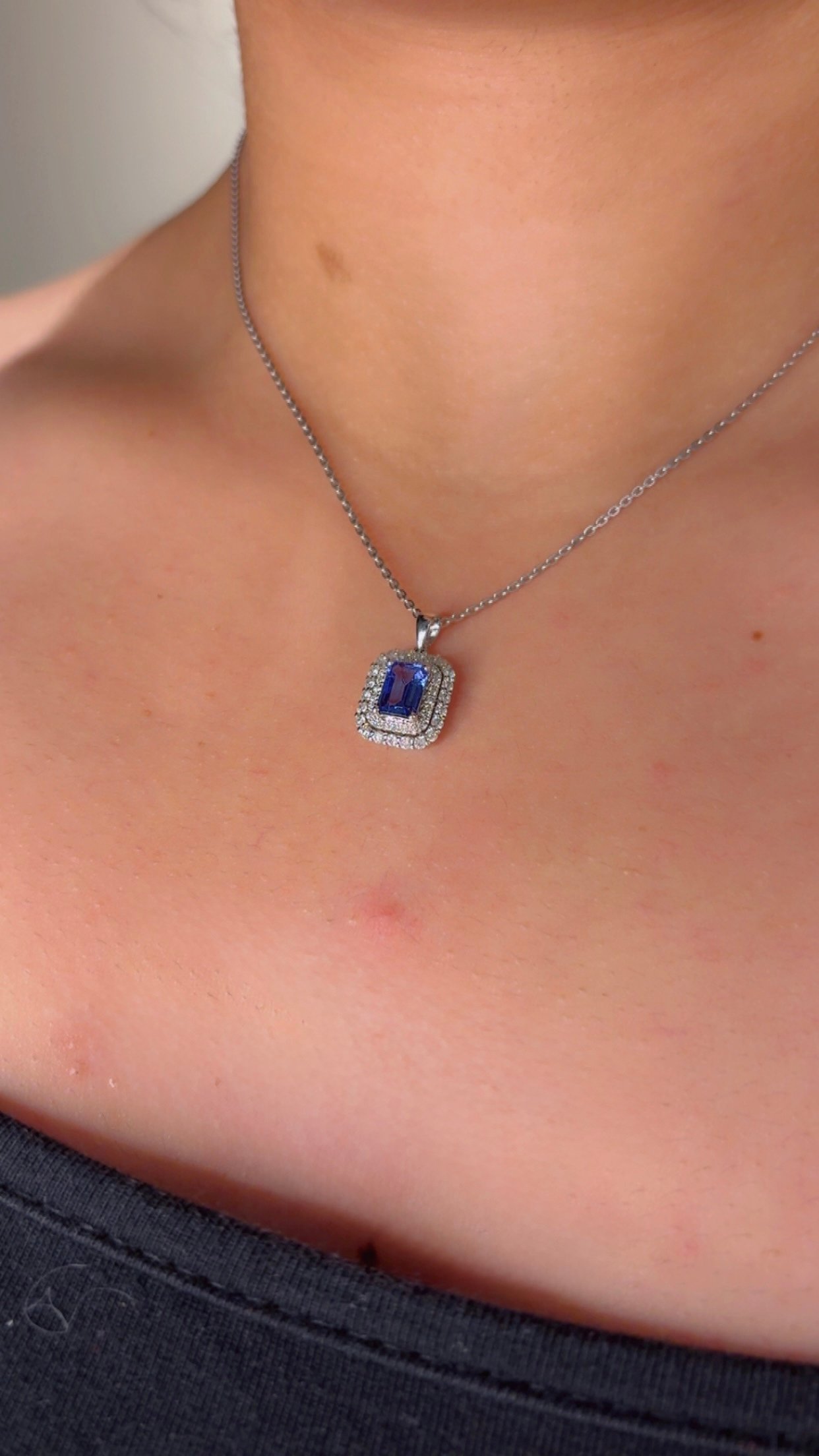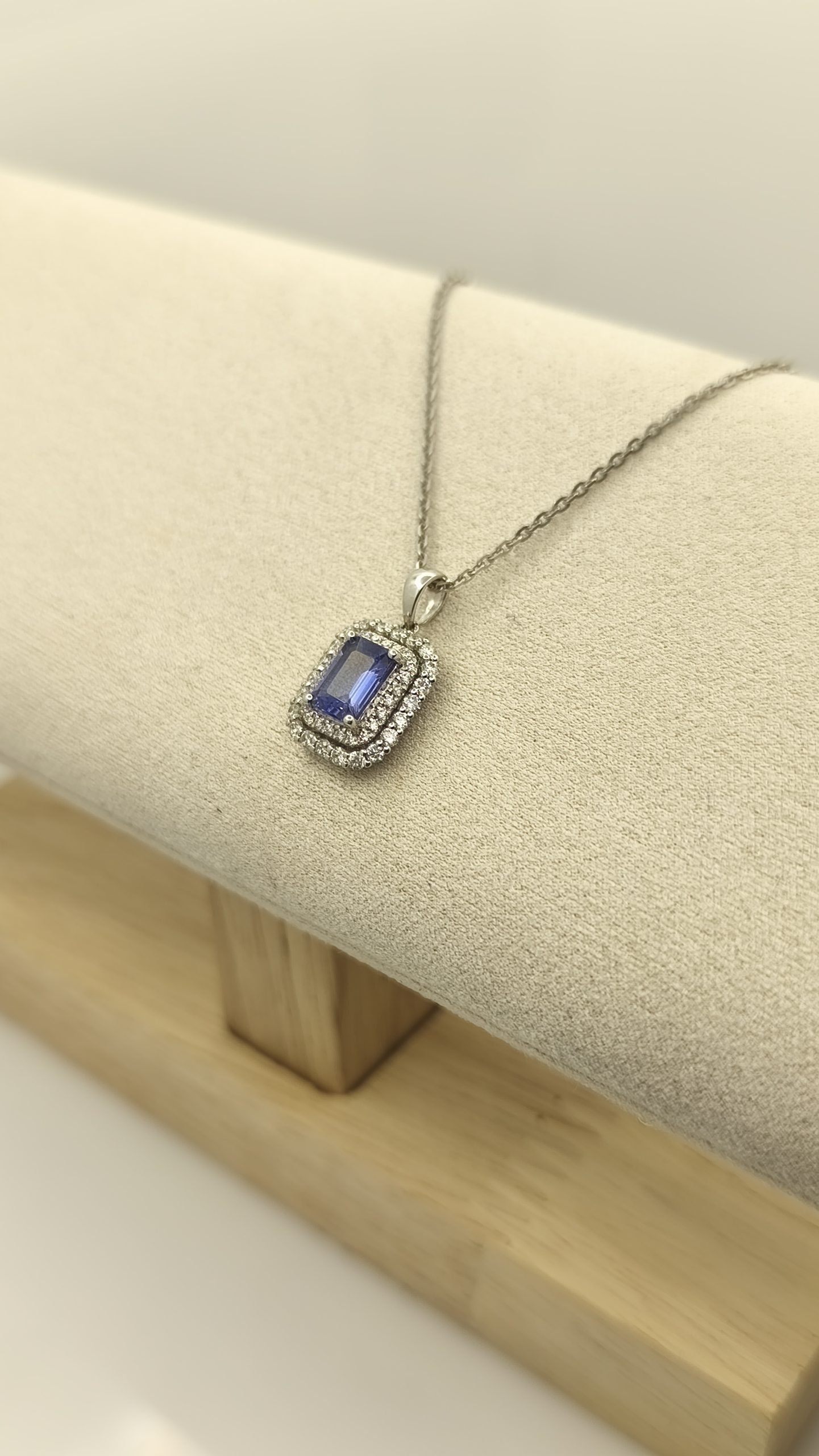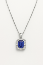 Collar con Dije y Piedra Tanzanita 0,85Ct / Diamante 0,43Ct / Oro Blanco 18k