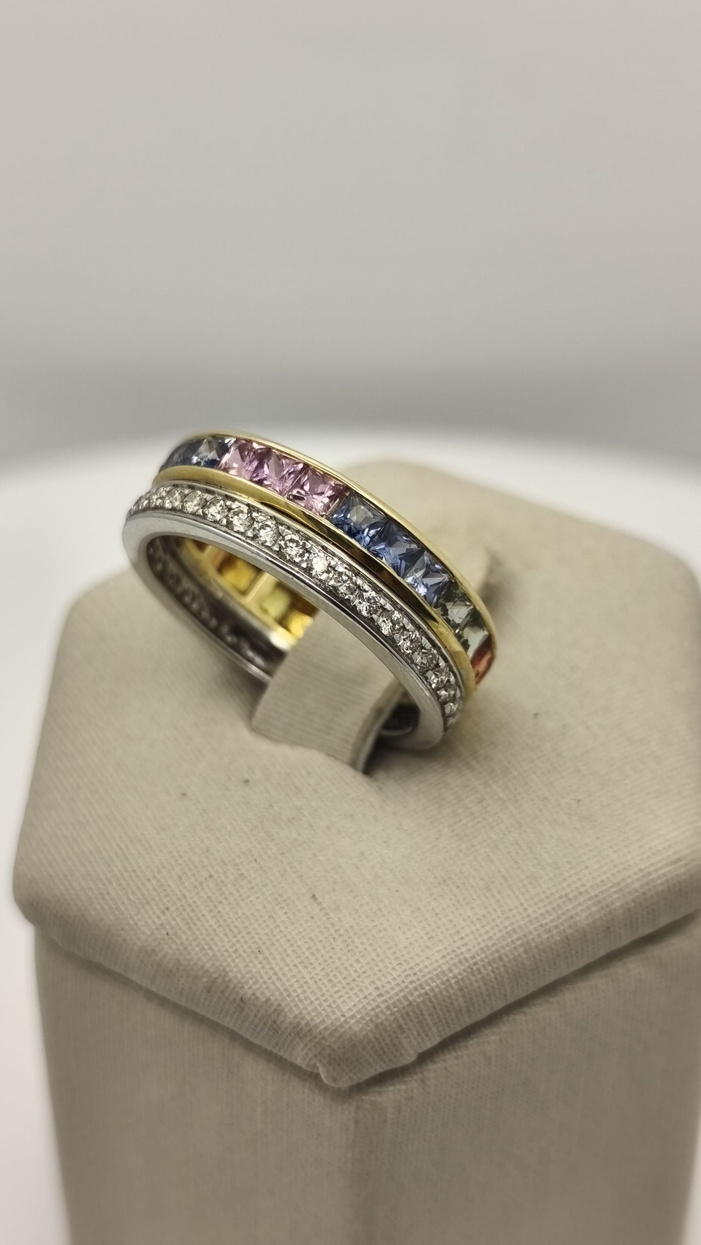 Anillo con Zafiro de Colores y Diamante 0,35Ct / Zafiro 1,87Ct / Oro Blanco 18k