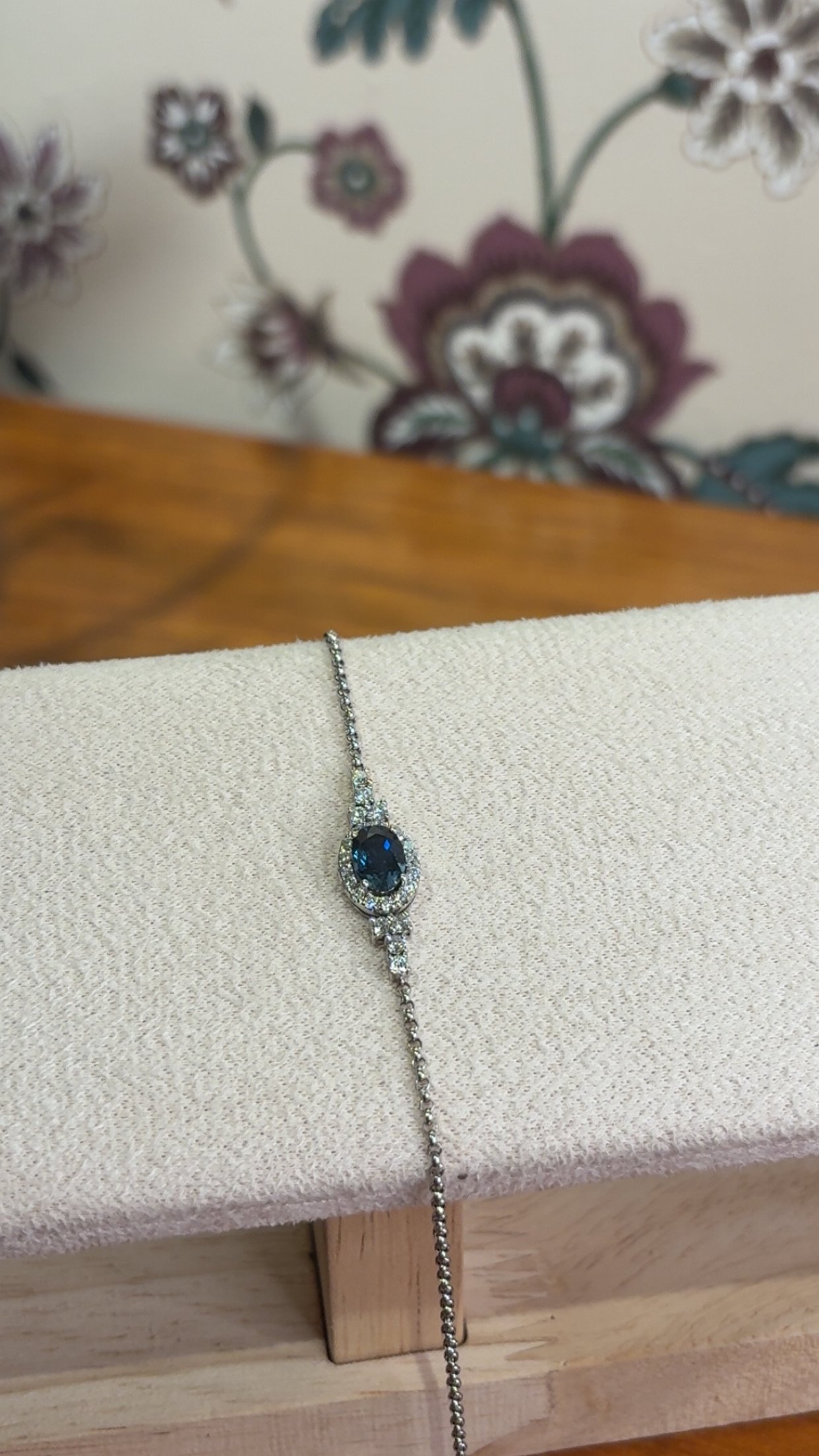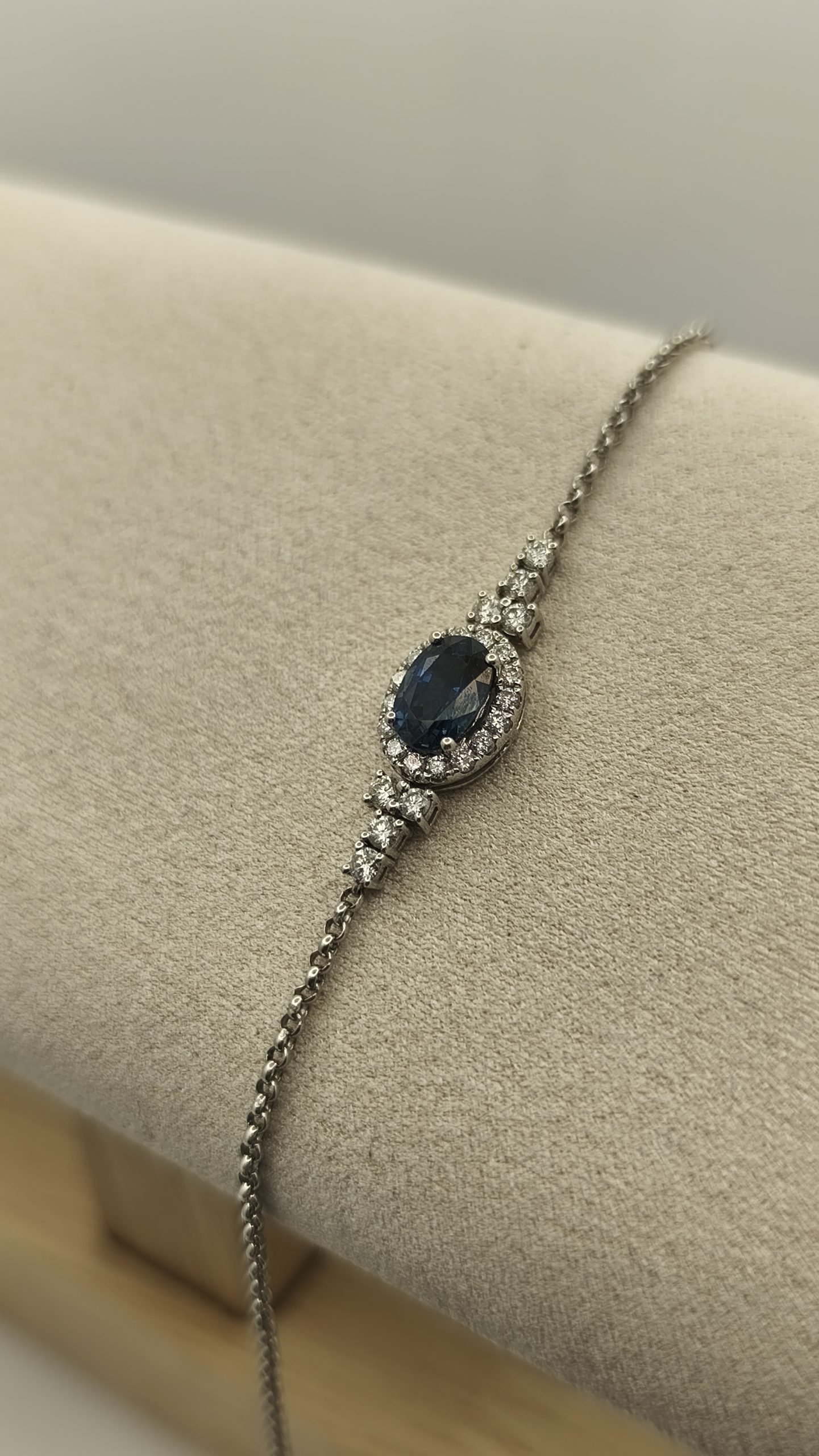 Pulsera con Piedra Zafiro y Diamante 0,34Ct / Oro Blanco 18k