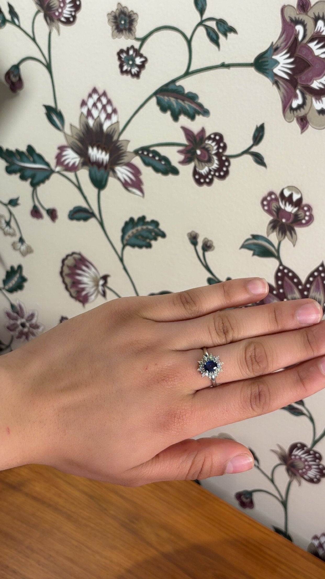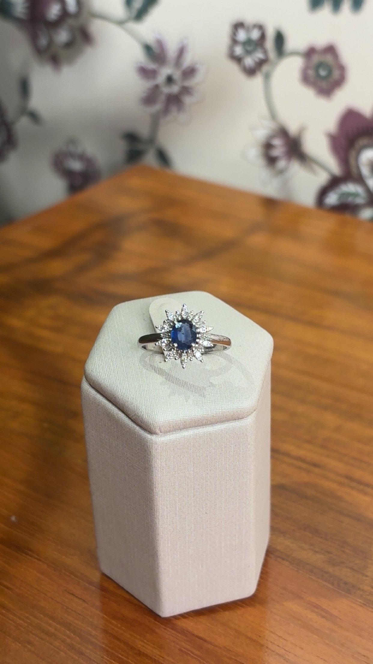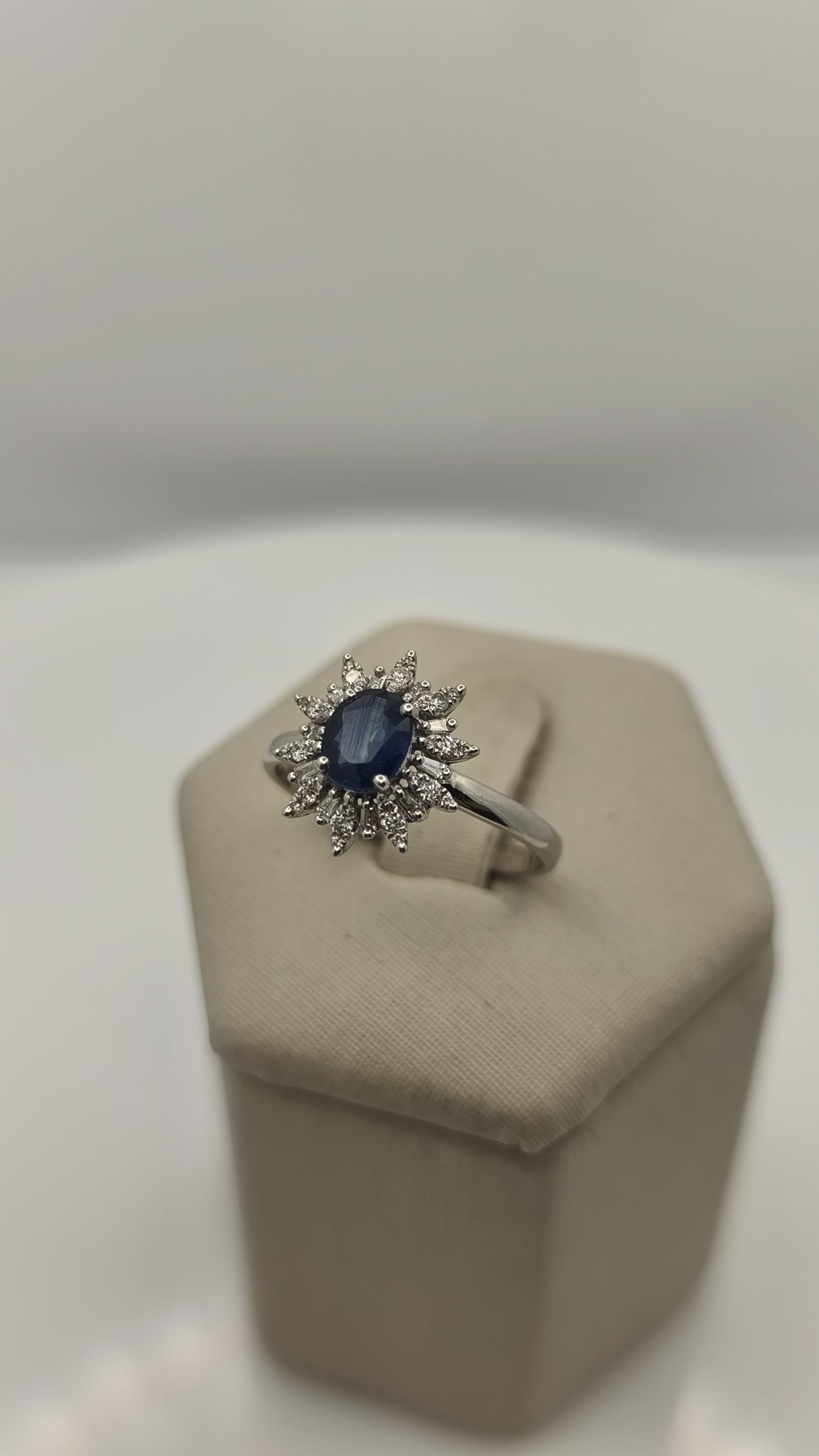 Anillo con Piedra Zafiro y Diamantes 0,20Ct / Zafiro 0,60Ct / Oro Blanco 18k