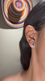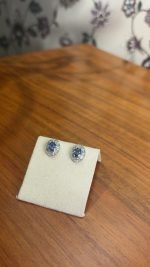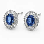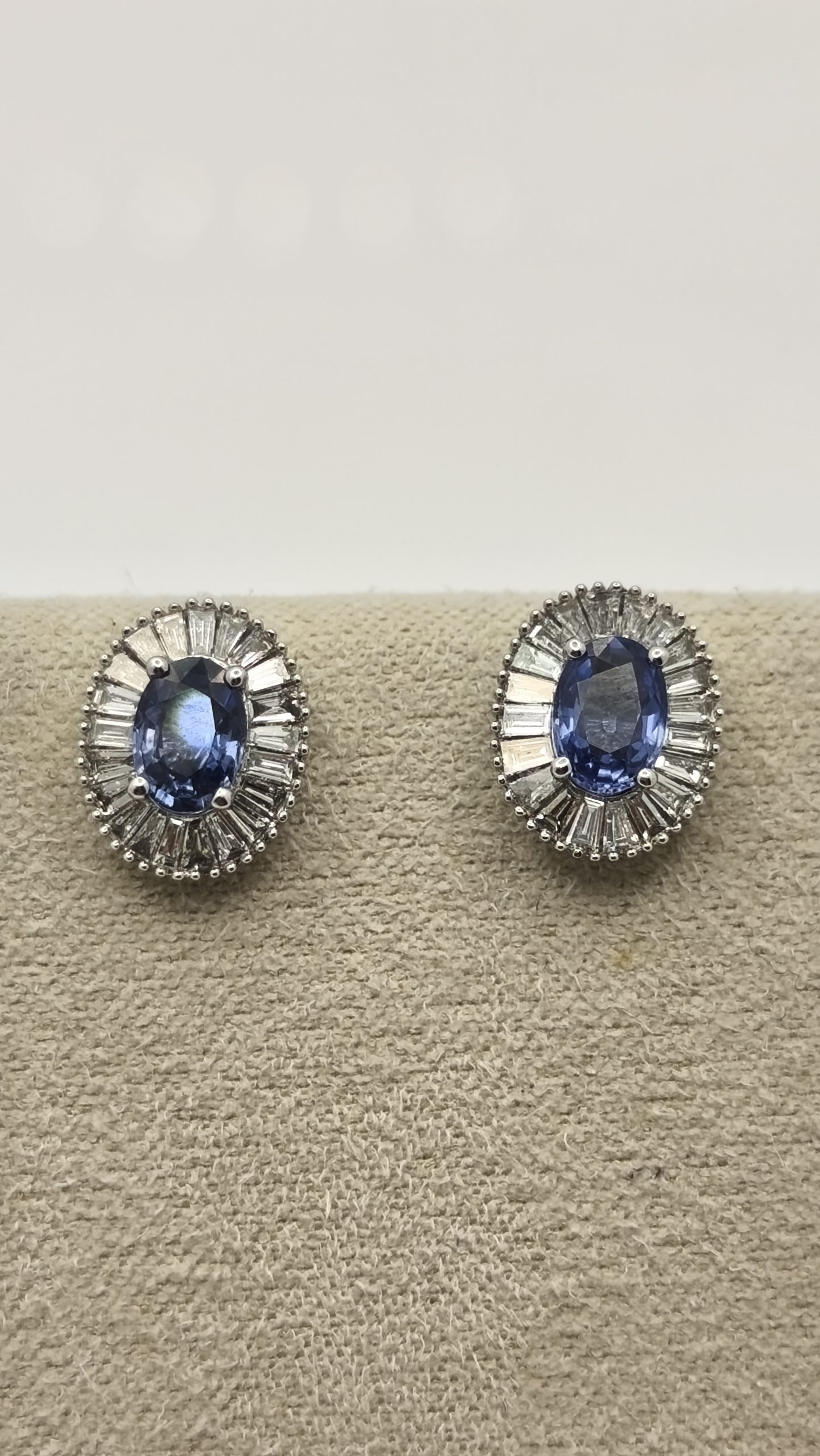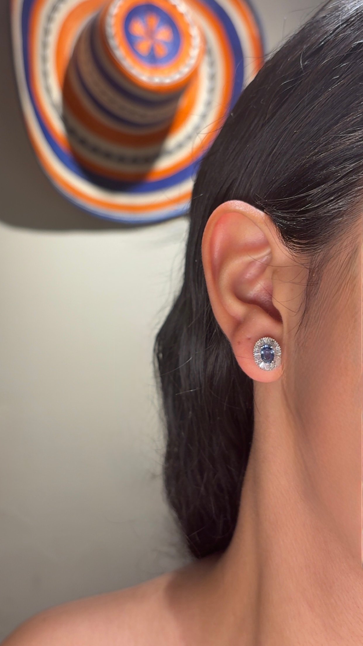 Aretes con Piedra Zafiro Oval y Diamante 0,44Ct / Zafiro 1,07Ct / Oro Blanco 18k