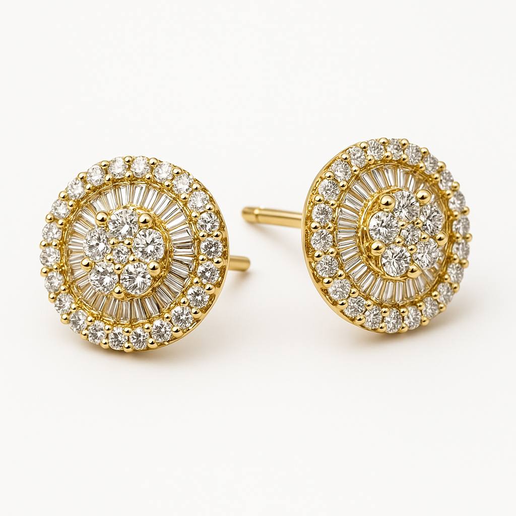 Aretes Estilo Pizza con Diamantes 0,77Ct / Oro Amarillo 18k