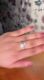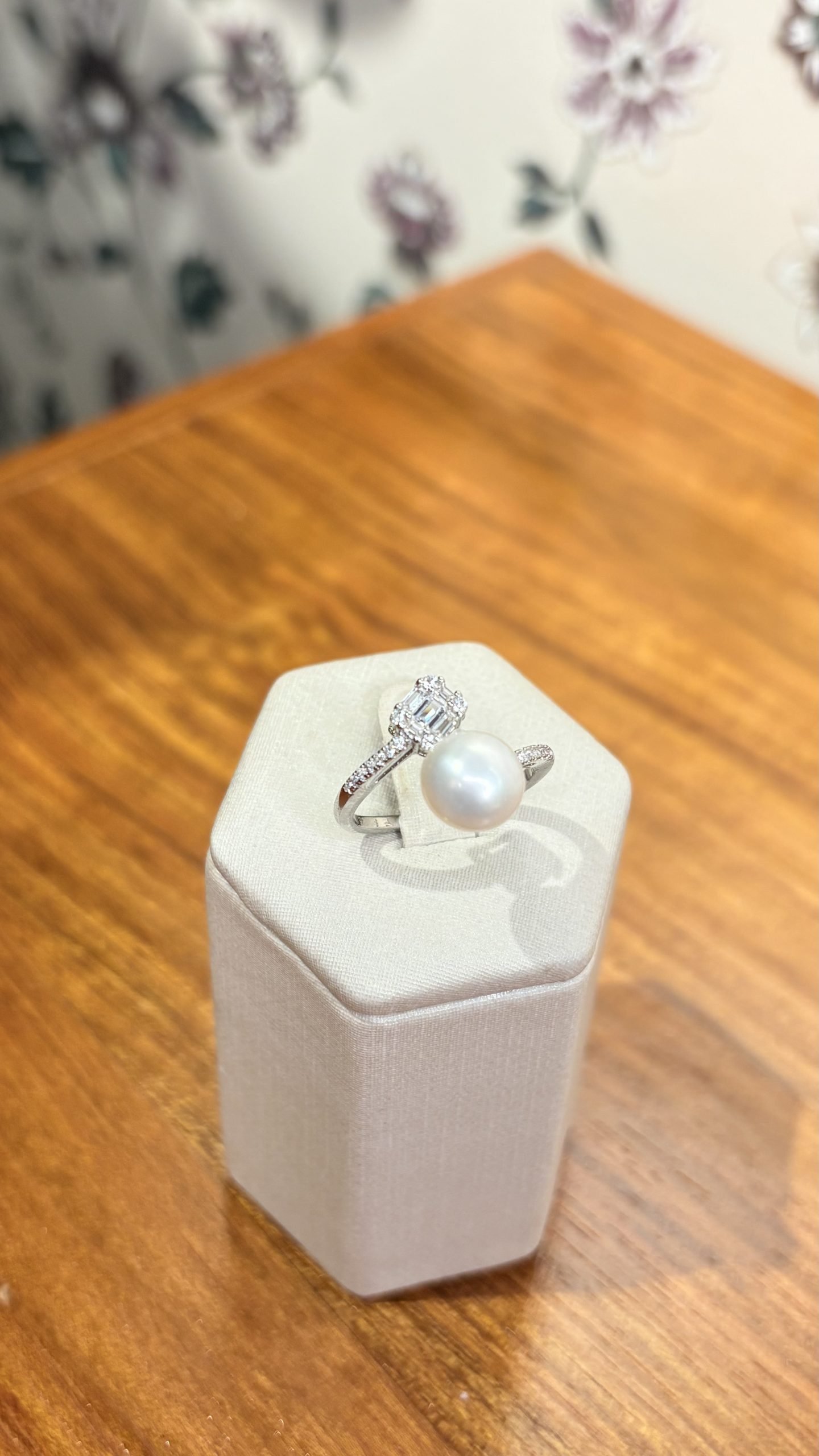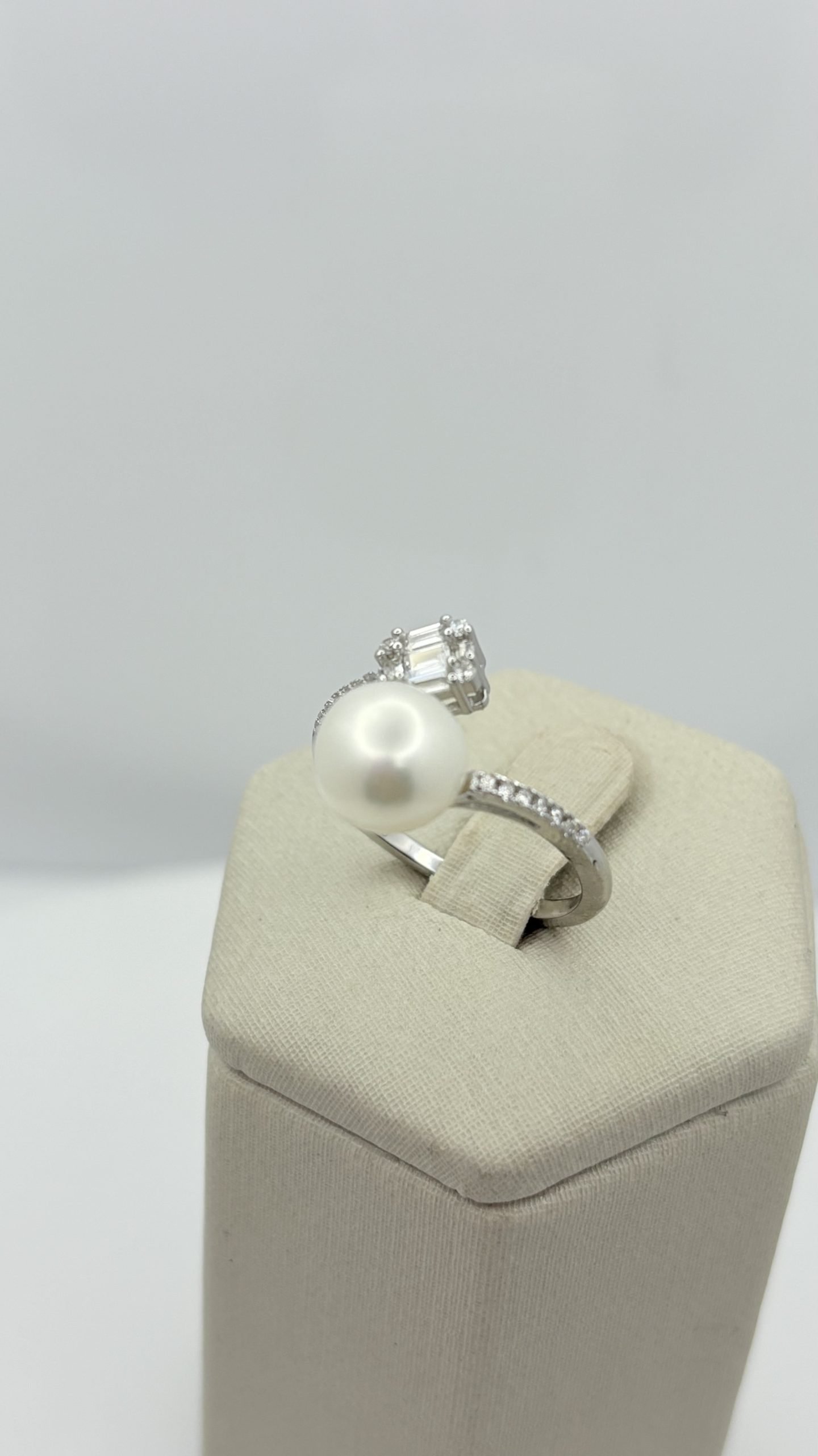 Anillo en plata 925 baño de rodio, ajustable con 2 filas de circones blancos, Perla en la punta de 8,5mm
