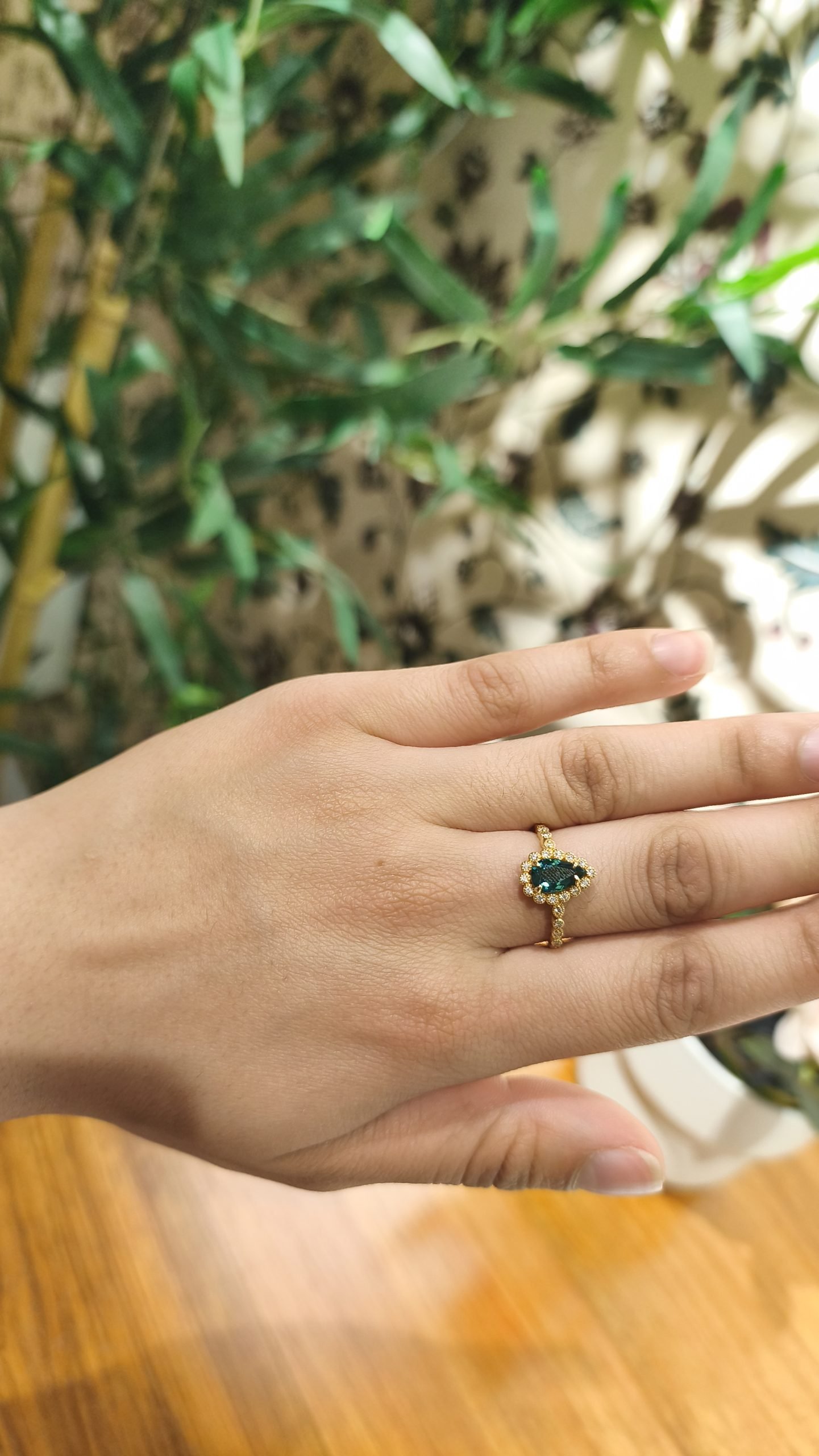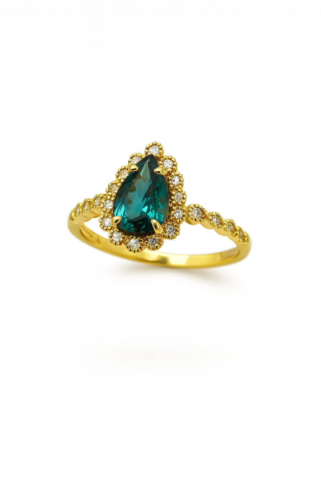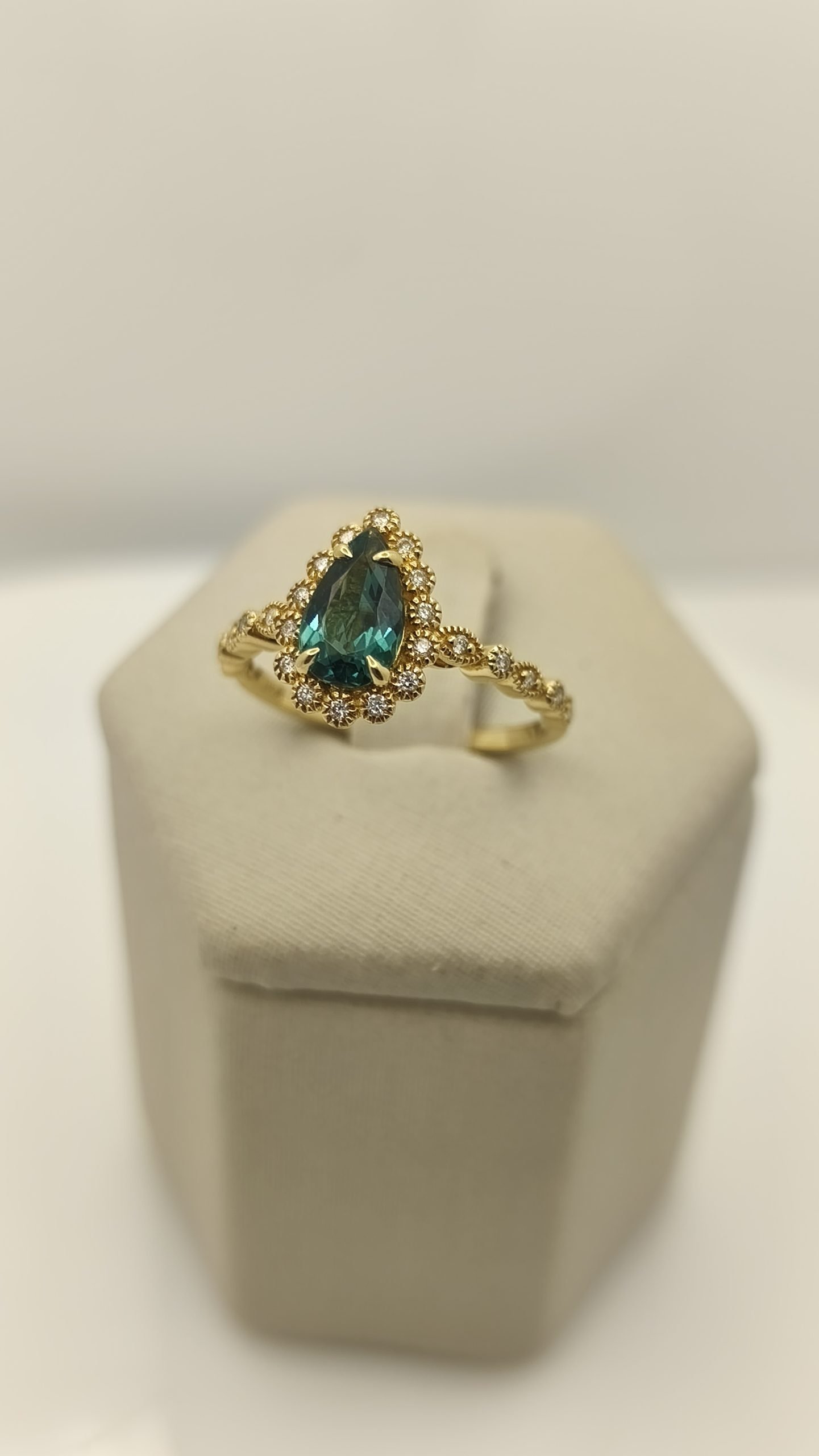 Anillo con Piedra Turmalina 0.77C t/ Diamante 0.12Ct/ Oro Amarillo 18k