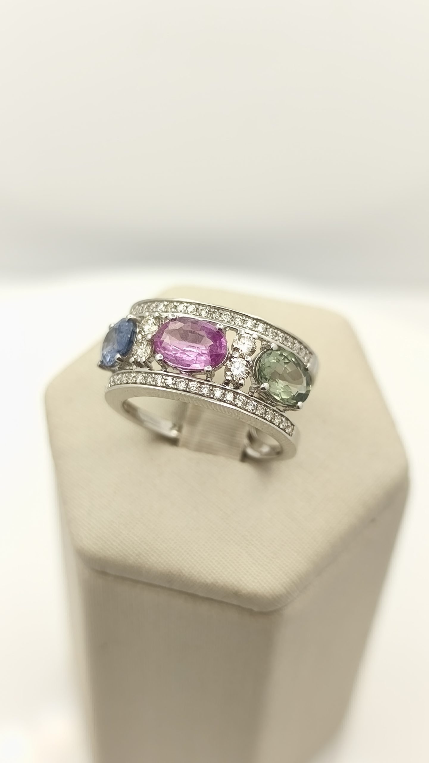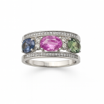 Anillo con Zafiro de colores 2.5Ct / Diamante 0.43Ct Oro Blanco 18k