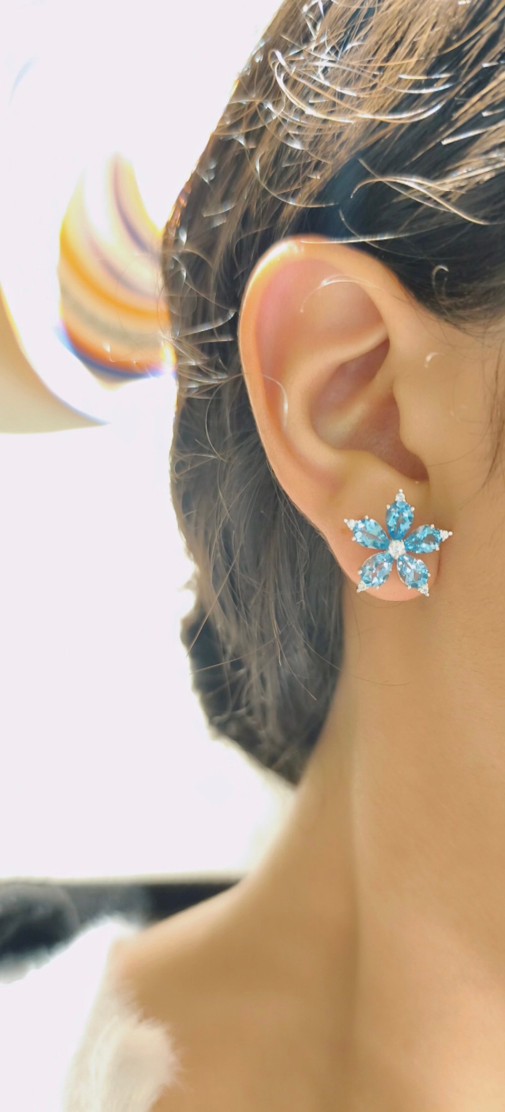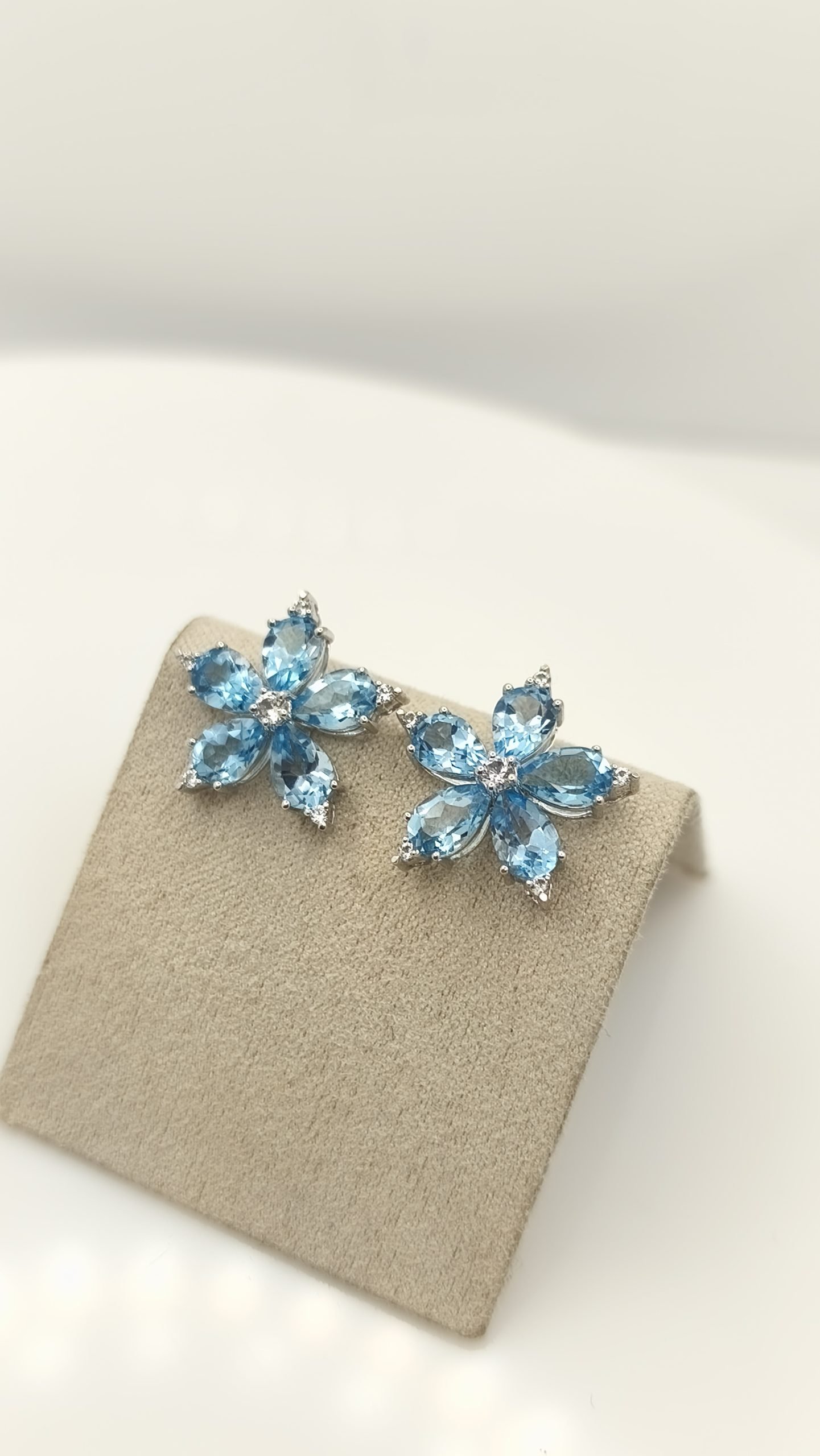 Aretes con Piedras Topacio Azul Topacio 5Ct / Oro Blanco 18k