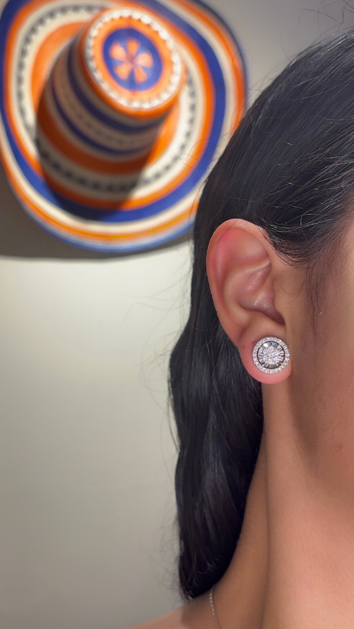Aretes Redondos con Diamantes 0,84Ct / Oro Blanco 18k