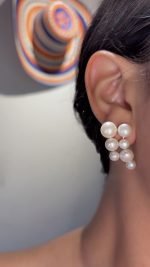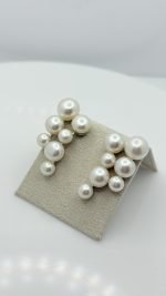 Aretes tipo EAR CUFF en Plata 925, con perlas naturales alternadas de 8 mm, 7 mm y 5 mm