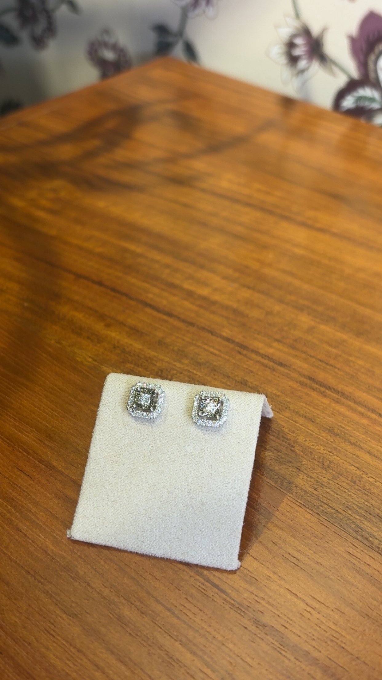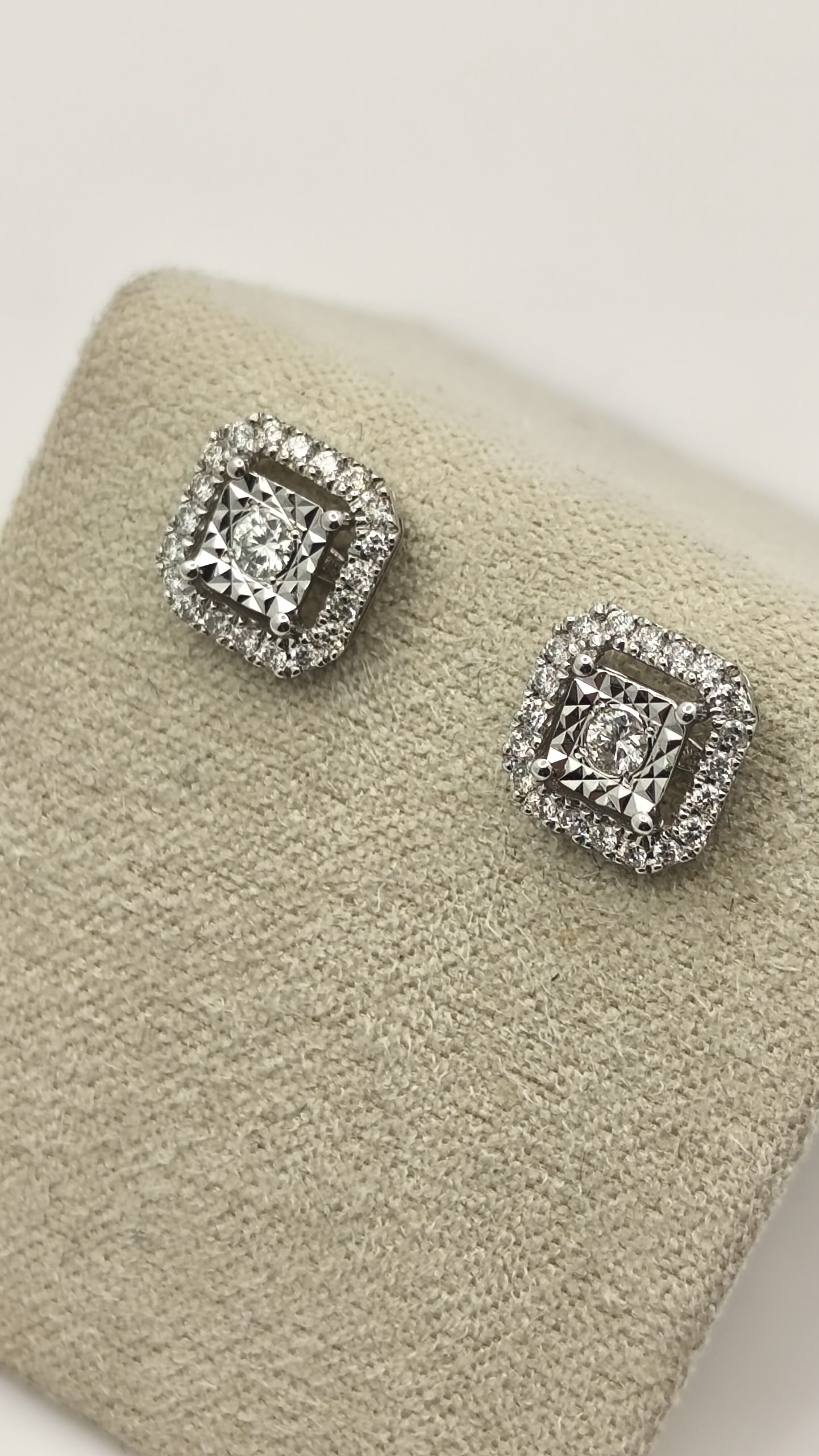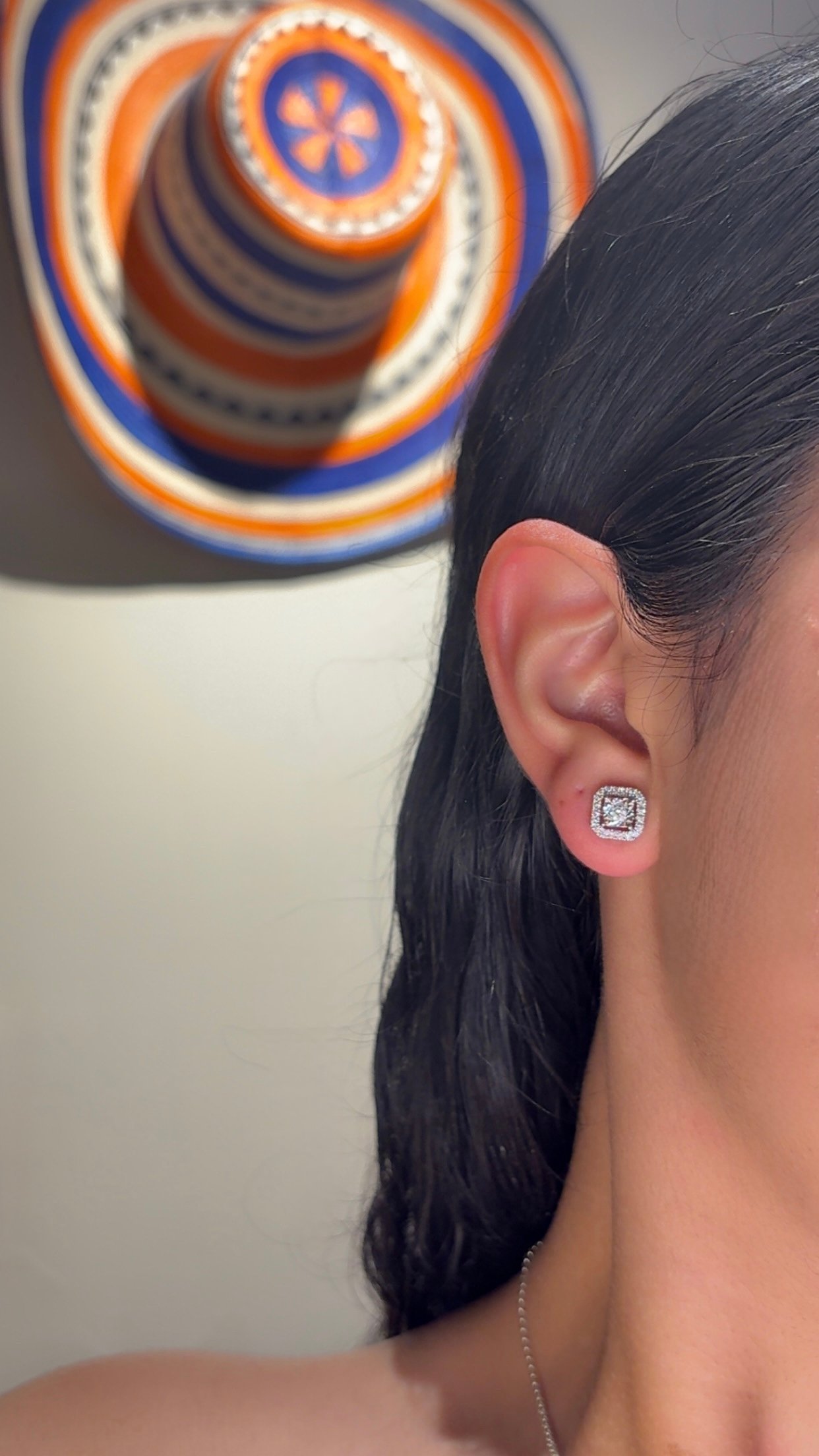 Aretes Forma Cuadrado con Diamante 0,30 Ct / Oro Blanco 18k