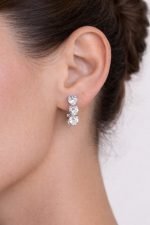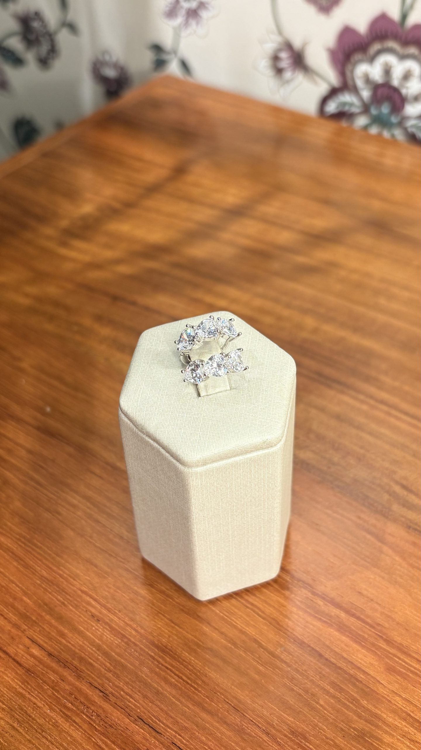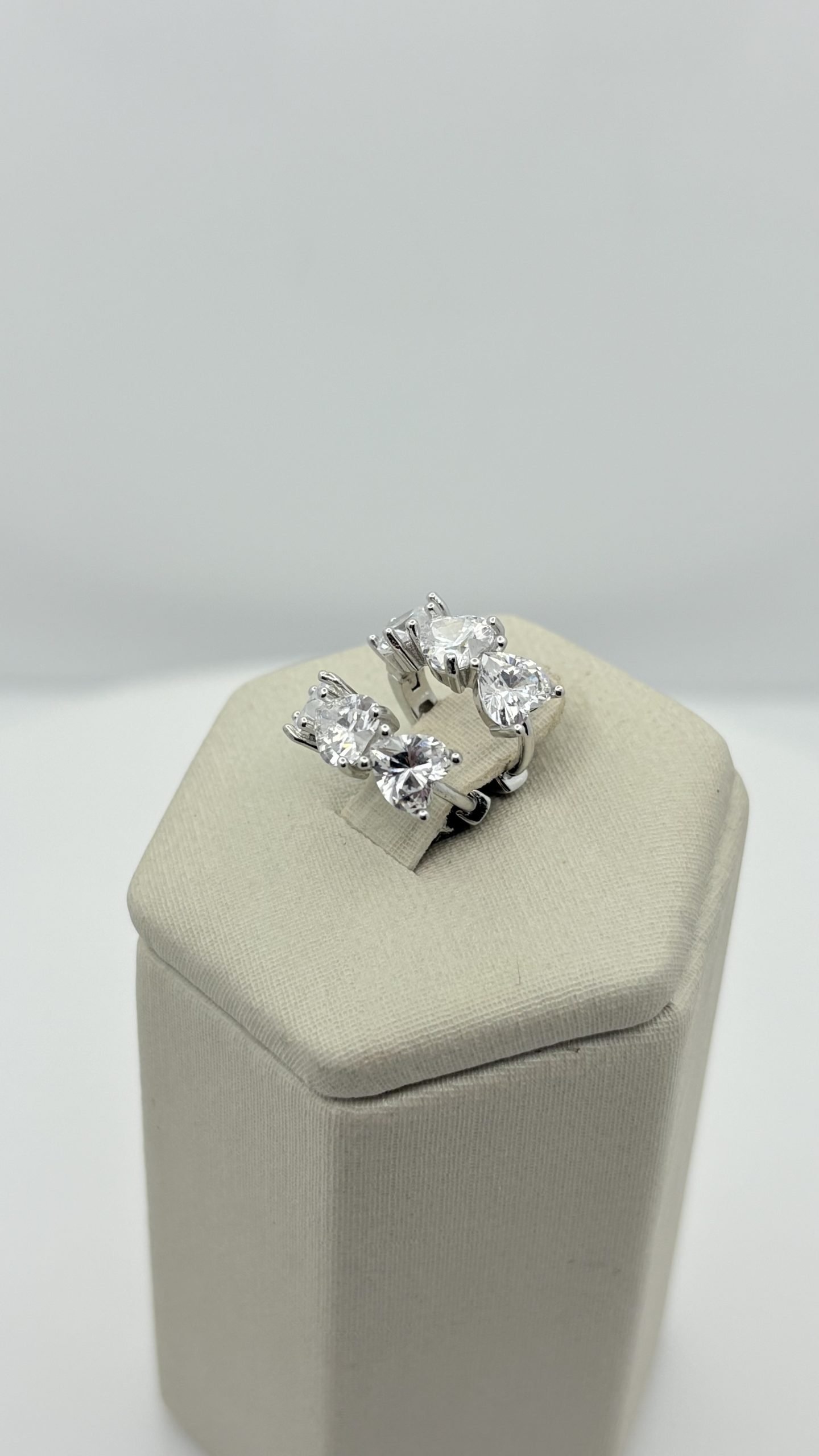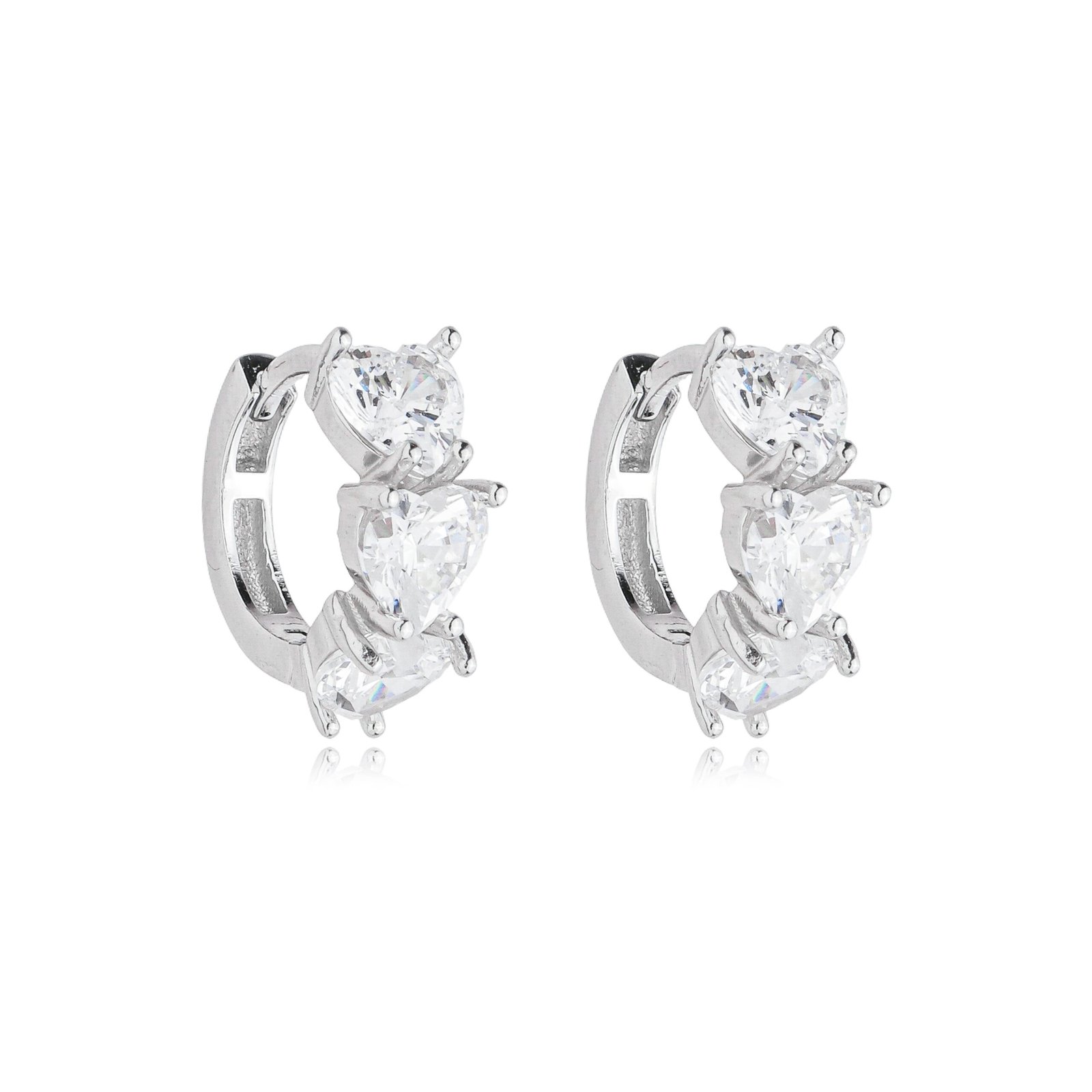 Candongas en plata 925 forma de aro de 14 mm con 6 piedras blancas en forma de corazón de 5 x 5 mm