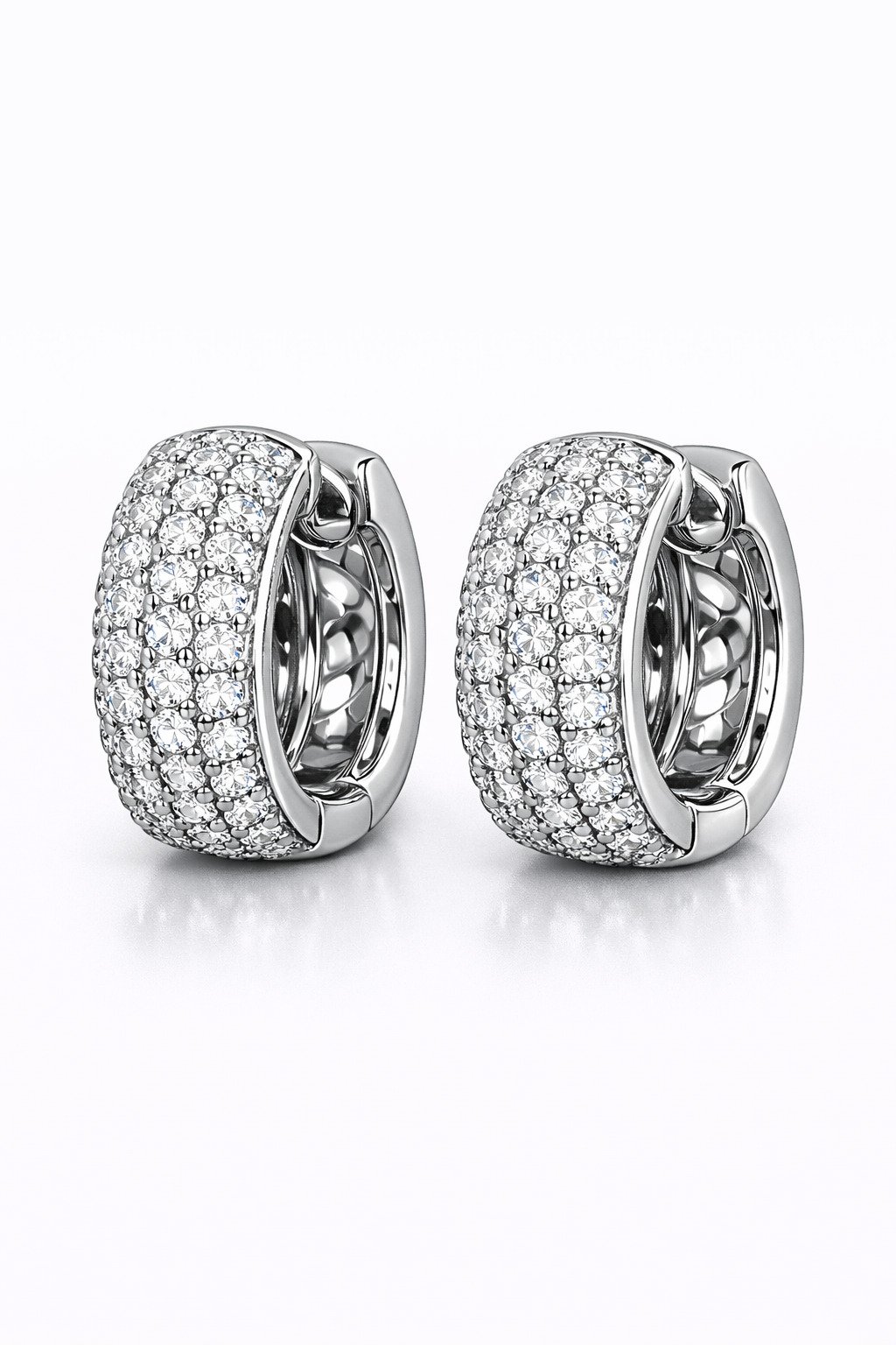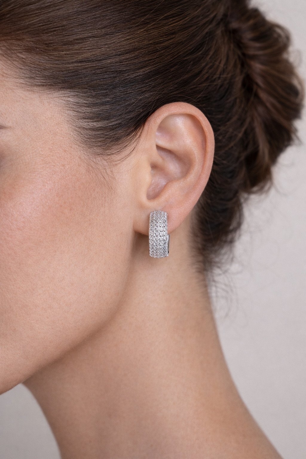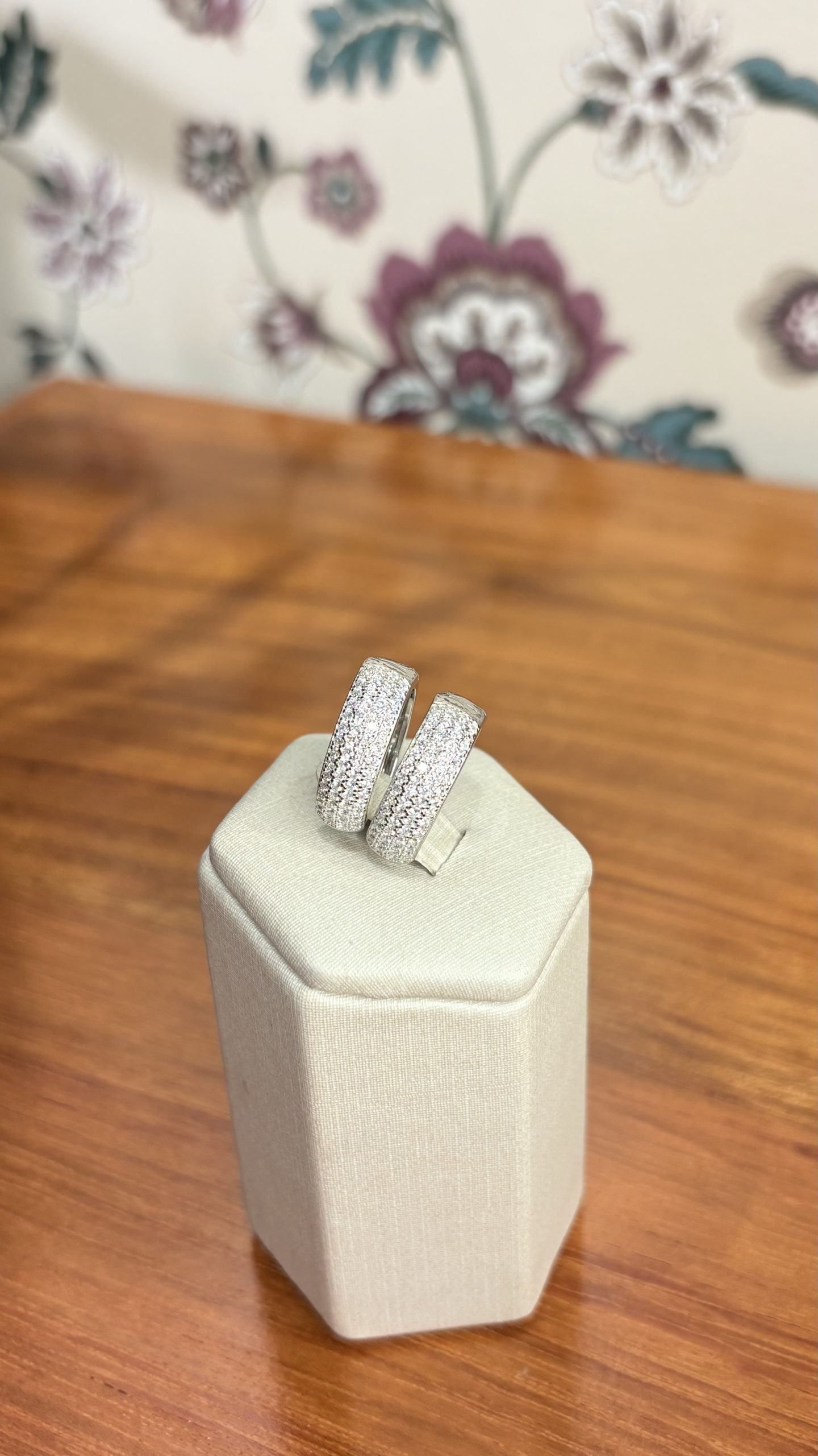 Aretes en Plata 925 Con aro de 17 mm, 4 filas de circones blancos.