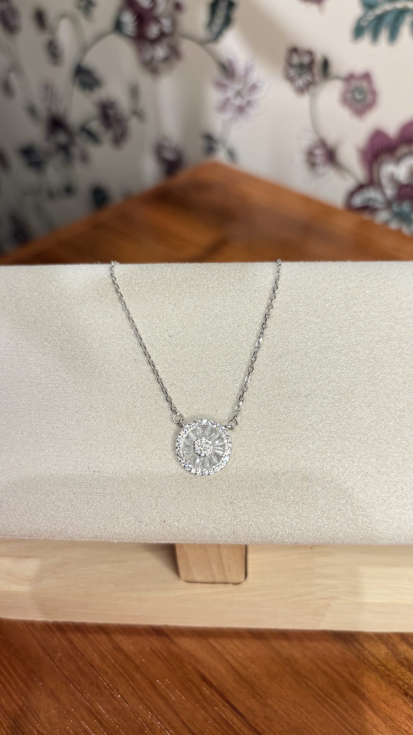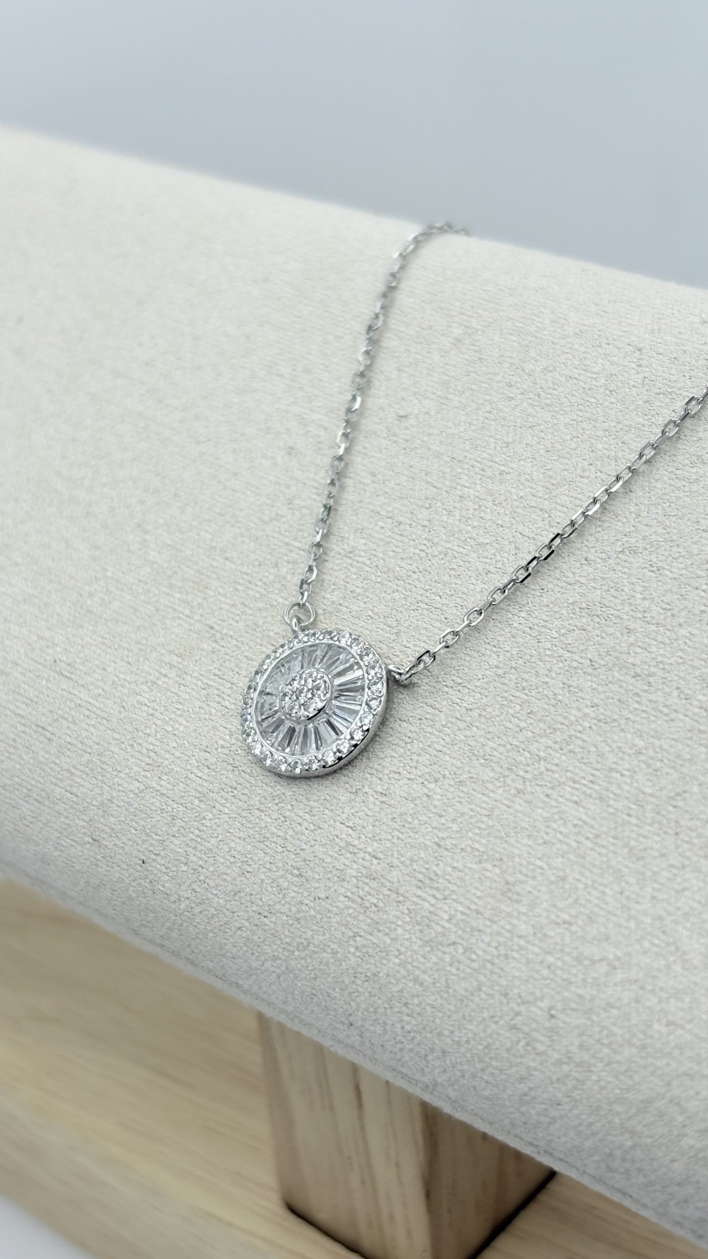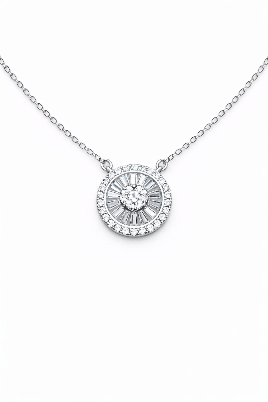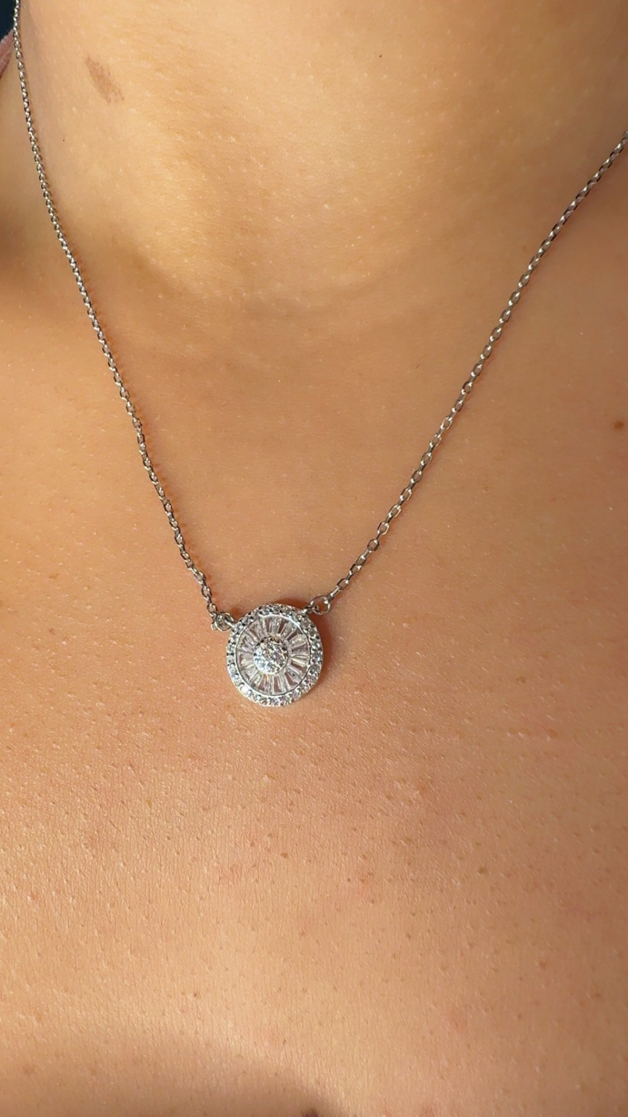 Collar en Plata 925 con base redonda, y centro de circones blancos.