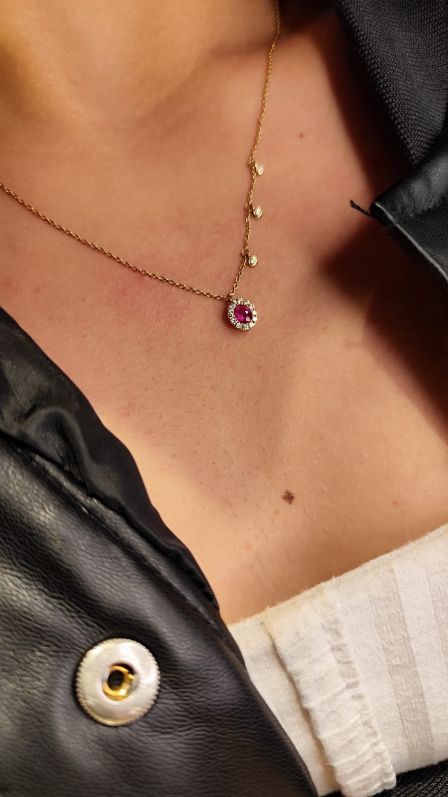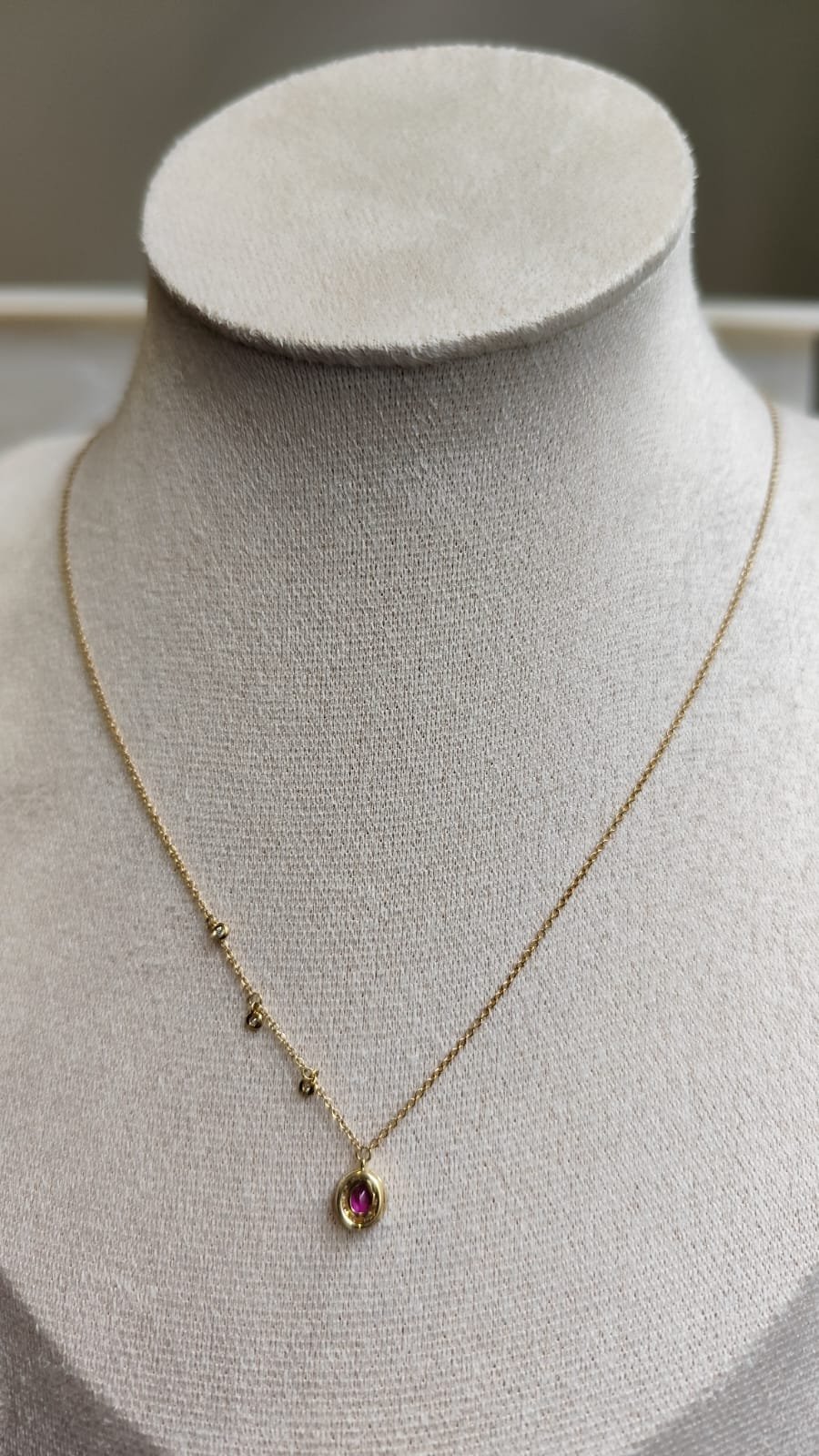 Collar con Dije en Rubí y Diamante / Rubí 0,2ct / Diamante 0,1ct / Oro Amarillo 18k