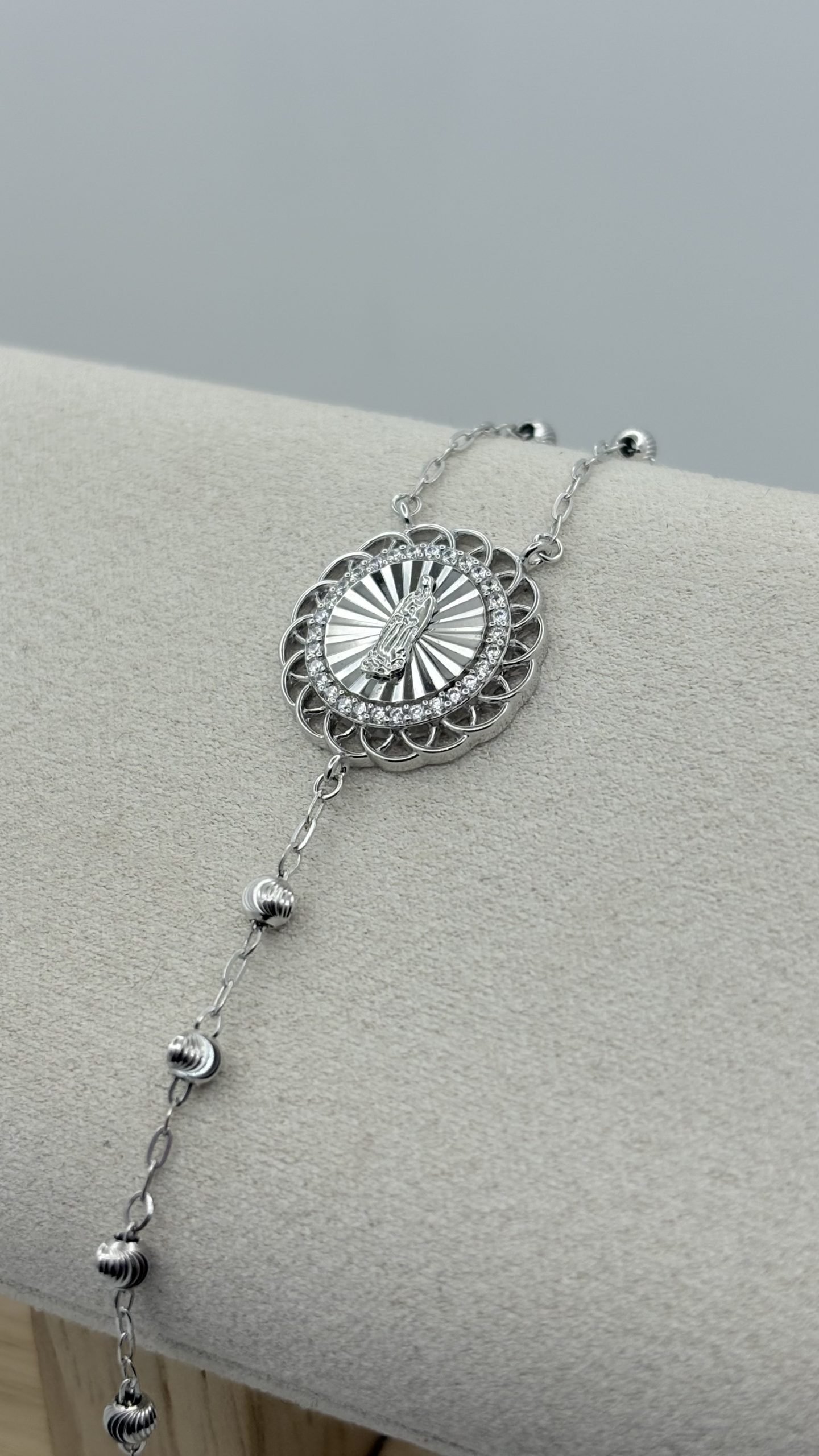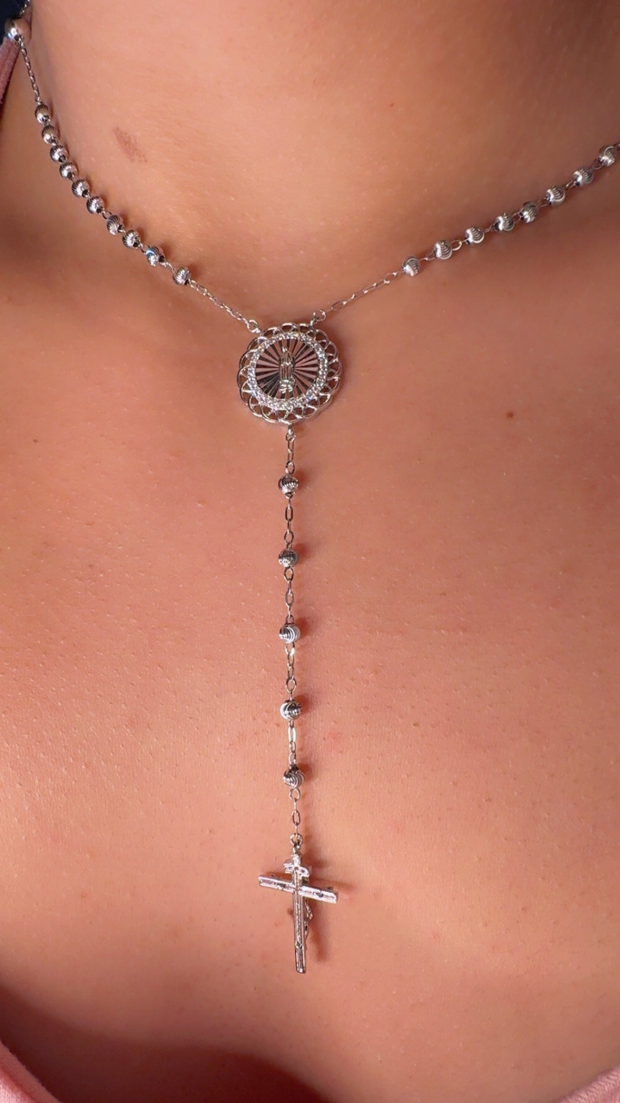 Rosario en Plata 925 con Nuestra Señora de Fátima lisa 17mm.