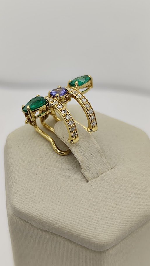 Piercing Esmeralda y Tanzanita / Esm 0.82Ct / Tan 0.2Ct / D 0.24Ct / Oro Amarillo